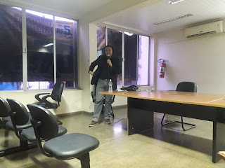 Após a palestra, um registro nosso com o Hian, que nos deu essa moral de contribuir com o evento.